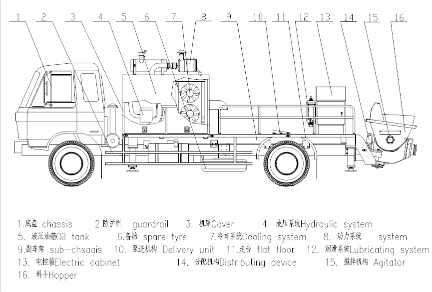 選用國內質量領先的東風底盤,采用世界品牌濰柴道依茨柴油機作為動力,德國進口的力士樂油泵,電氣元件選取也均為國內外行業知名品牌,是一款動力性能好、操作簡單可靠、吸料性強、散熱大的車載式泵車。