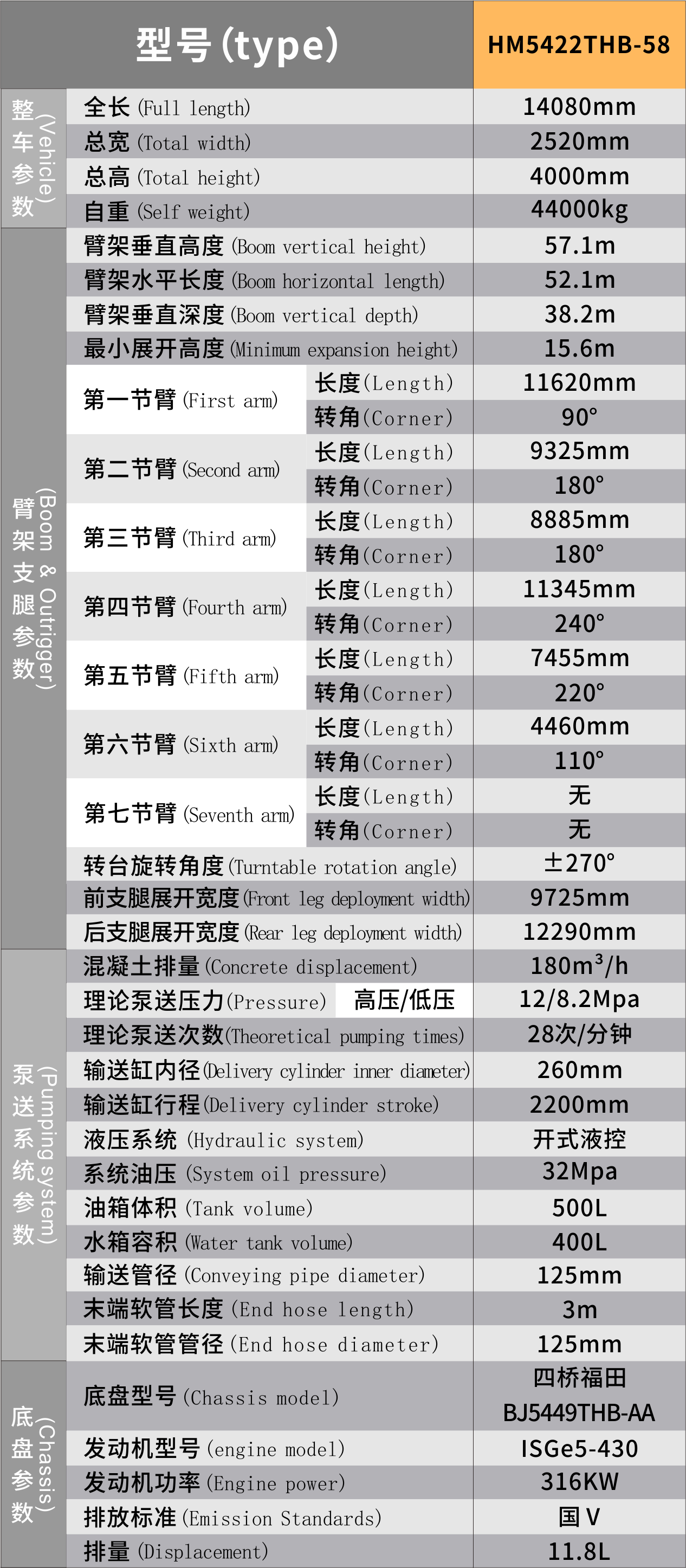 型號:HM5422THB-58 參數:底盤:四橋福田