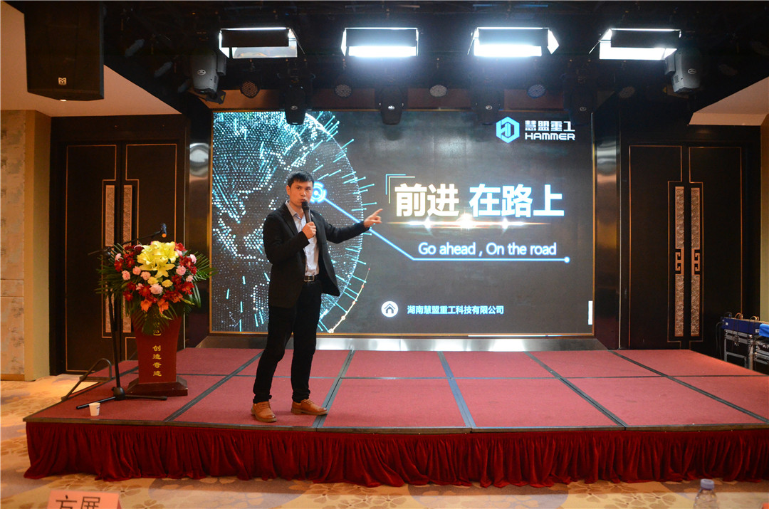 慧盟重工生產總經理全科上臺致辭。2019年,慧盟重工實現了供應企業的規范化、集中化、規模化生產。感謝各位供應商為此做出的貢獻。過去已成歷史,我們將放眼于未來,2020年,希望與在座各位供應商朋友緊密協作,共創雙贏!